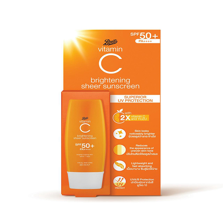 Boots/부츠 비타민 C 브라이트닝 쉬어 선스크린 SPF50+ PA++++ 30ML