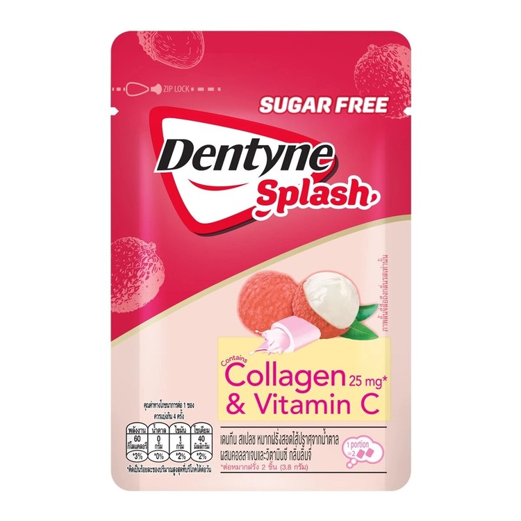 Dentyne Splash 무설탕 츄잉껌, 콜라겐과 비타민C가 혼합되어 리치 향이 나고 맛있고 씹는 재미가 있습니다.