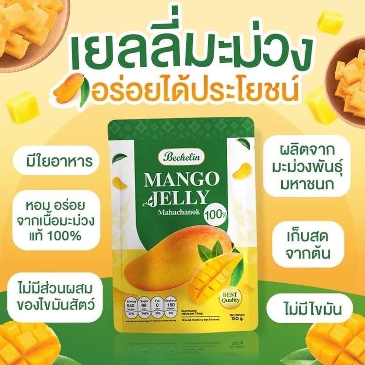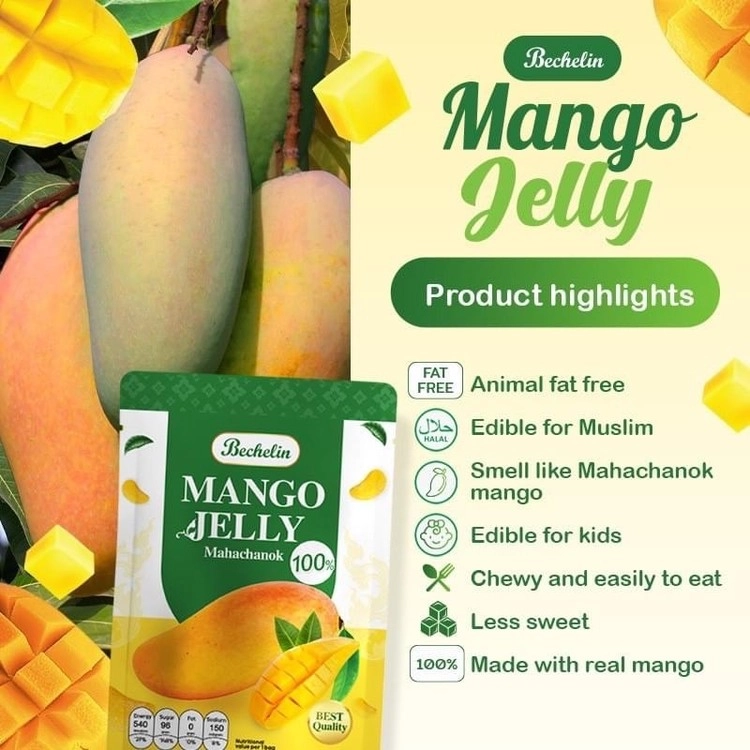 태국 OTOP 인증 제품은 맛과 퀄리티가 높아 미국과 아시아로도 수출되고 있습니다. 개별 포장된 망고 젤리는 먹기 편하고 보관하기도 편리합니다. 맛있는 망고와 맛있는 시간을 보내세요!