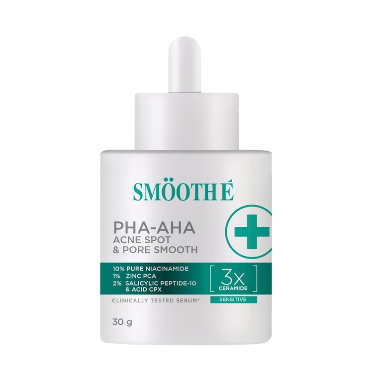 스무스 E PHA-AHA 아크네 스팟 & 포어 스무스 세럼은 여드름으로 인한 다크 스팟이 고민인 분들을 위한 제품입니다. 여드름 발생 원인을 완화하고, 각질을 제거하며, 얼굴의 유분을 감소시키고, 피부 탄력을 회복시키며, 박테리아 증식을 억제하고, 여드름으로 인해 염증이 생긴 피부를 진정시켜 줍니다.