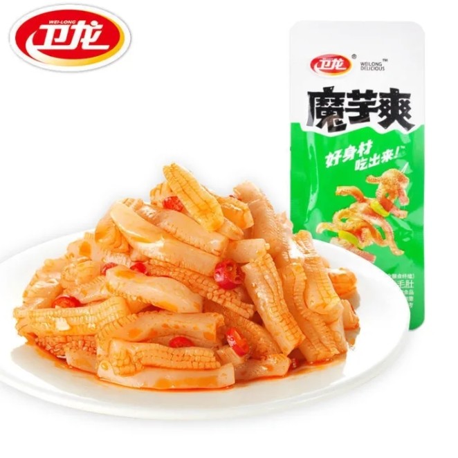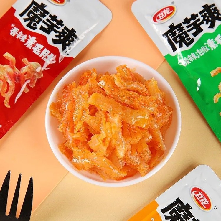 웨이롱 크리스피 오징어 마라맛 면: 천연 곤약으로 만든 이 면은 정통 중국 마라맛으로 양념되었습니다. 매콤하고 바삭하며 향신료 향이 가득합니다. 맛있고 바삭하며 재미있는 씹는 맛을 즐겨보세요.