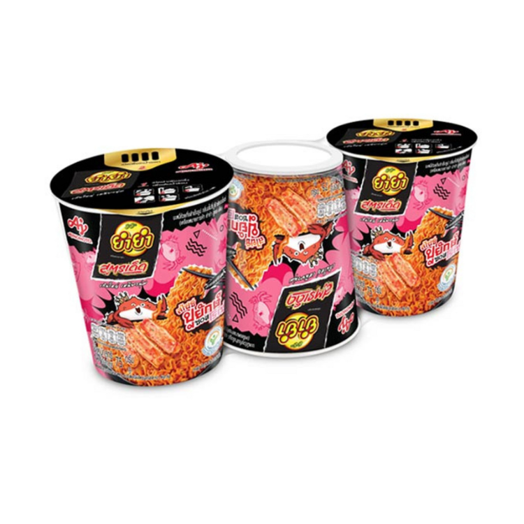 - ยำยำบิ๊กคัพ กลิ่นสไปซี่ปูยักษ์ซอสโรเซ่ เส้นใหญ่ เหนียวนุ่มพร้อมซอสเข้มข้น