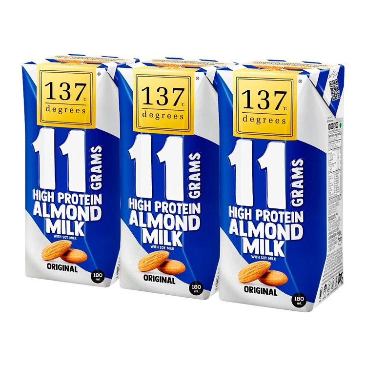 137degrees/137 ดีกรี นมอัลมอนด์ผสมน้ำนมถั่วเหลือง โปรตีนสูง สูตรดั้งเดิม 180 มล. x 3 ชิ้น