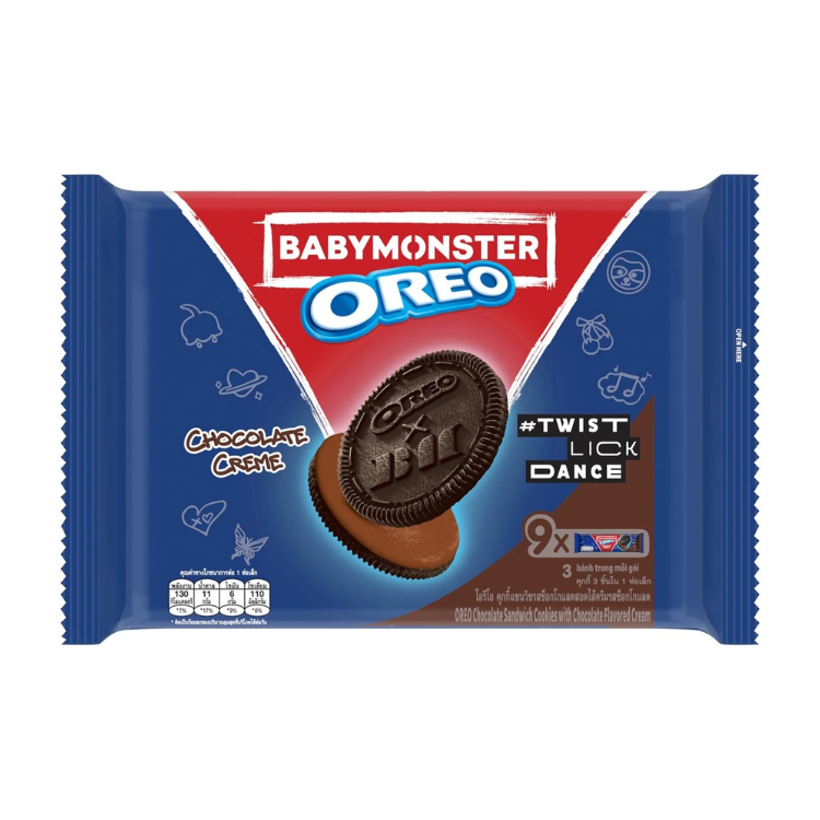 Oreo/โอรีโอ x เบบี้มอนสเตอร์ คุกกี้แซนวิชรสช็อกโกแลต สอดไส้ครีมช็อกโกแลต 27.6 กรัม x 9