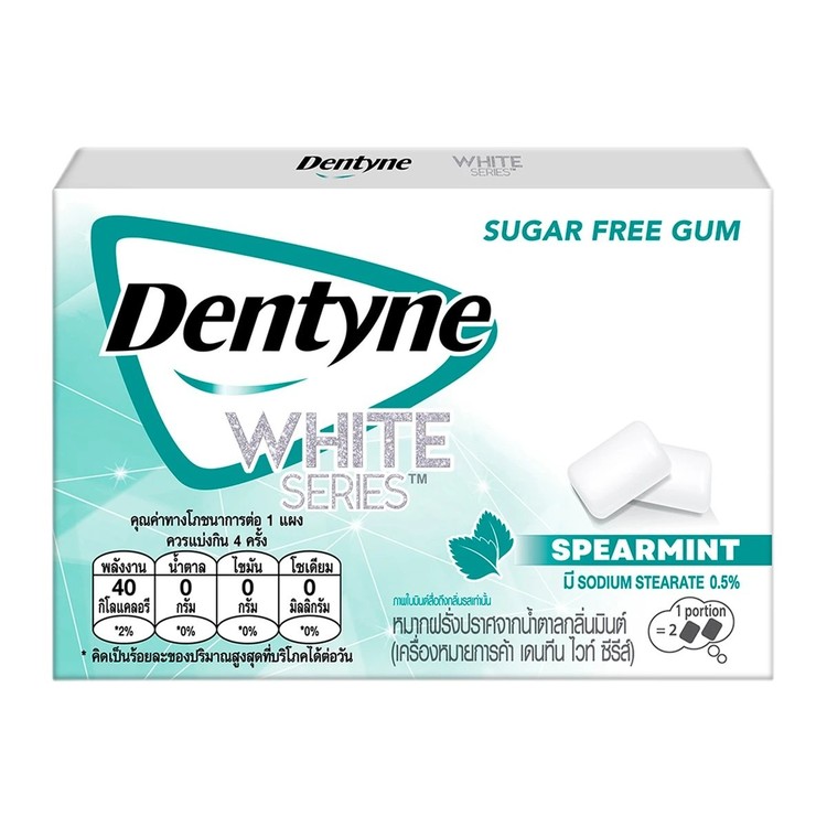 덴틴 화이트 시리즈 무설탕 스피어민트 츄잉껌. 상쾌하고 맛있는 씹는 즐거움으로 미소를 되찾으세요.