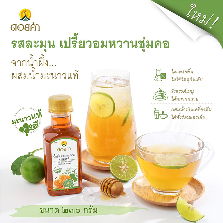 치앙라이의 천연 황금 꿀의 특별한 변신, 라임 허니를 드셔보세요. 진한 레몬티를 마시고 싶다면 도이캄 라임 허니 한병으로 해결이에요. 꿀과 라임으로 만들어진 달콤하면서도 새콤한맛의 매력에 빠질거에요. 물만 부으면 따뜻한 라임꿀차 또는 시원한 라임꿀 음료로 응용하여 마실 수 있어 간편하고 건강한 웰빙생활이 될거에요.