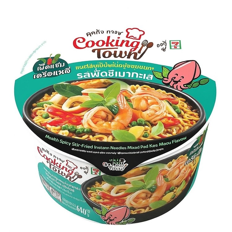 Cooking Town/คุคกิ้งทาวน์ บะหมี่กึ่งสำเร็จรูปชนิดชามรสผัดขี้เมาทะเล 60 กรัม