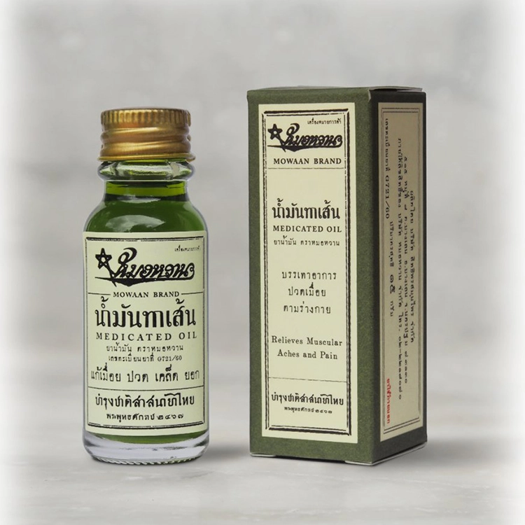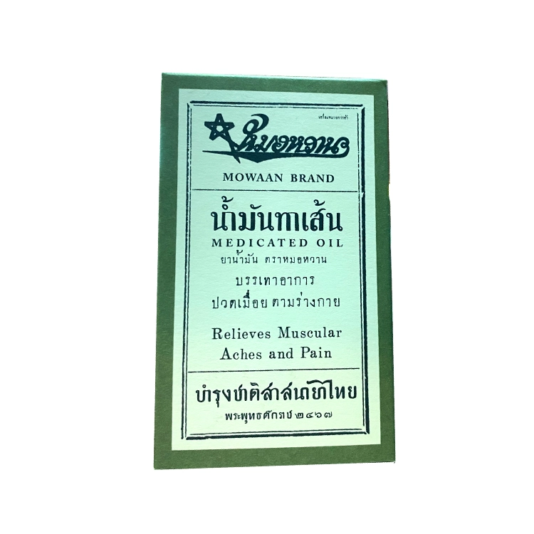 태국 왕실 전속 의사에 의해 설립된지 약 100년 가까이되는 '반 모완; 모완 약국' 의 천연 제품입니다. 천연 허브를 원료로 하여 모두 수작업으로 만들어지는 비약으로 근육통, 어깨 결림, 염좌 등 원하는 부위에 발라주기만 하면 오일이 환부에 자연스럽게 스며들어 상쾌하게 풀어줍니다. 운동을 즐기는 분들께 특히 인기있는 천연 오일입니다.